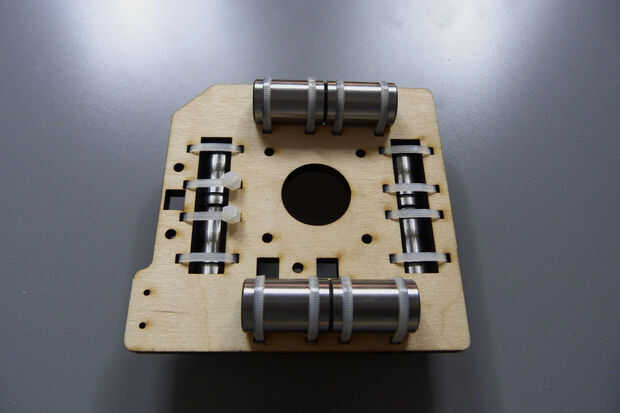 -Colocar barras lisas aunque rodamientos mientras zip-atar para asegurarse de que son rectas y paralelas