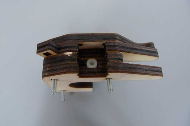 -Asegúrese de que el espaciador de nylon quede al ras con la parte inferior de la madera