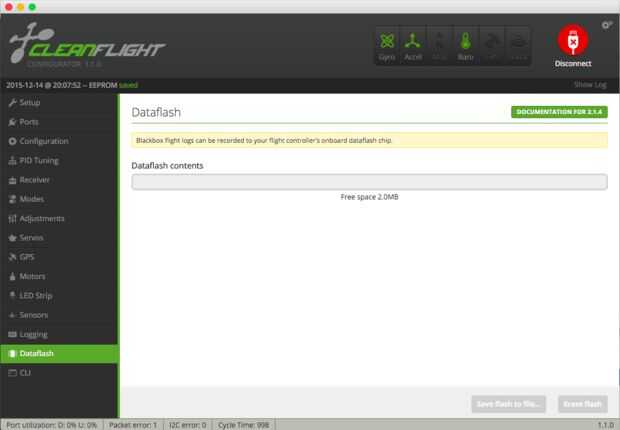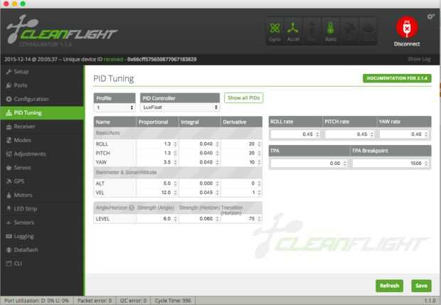 He flasheado mi Naze32 con Betaflight como se describe aquí. Usted puede elegir uso regular Cleanflight firmware (o incluso Baseflight lol). Ahora voy a describir la configuración que he cambiado, por menú (con fotos):