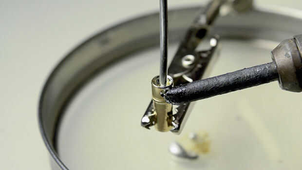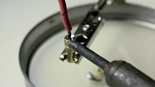 Para empezar, calentar el soldador unos 550 grados Fahrenheit. Continuación, mantenga la punta de la plancha en la parte exterior del conector bala (funciona mejor si la punta está en el agujero del conector) mientras coloca la soldadura en la parte superior del conector.