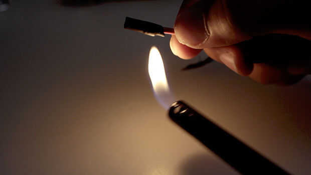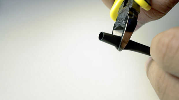 Después de eso, calentar el conector y el tubo con una pistola de calor o un encendedor.