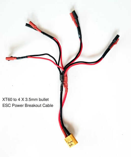 Deslice los cables de entrada de todos los CES entre las 2 placas. Mantiene la polaridad adecuada, conecte los terminales de 3,5 mm de tablero de arranque de alimentación a los terminales de entrada de la ESC. Cable rojo de ESC va a conectores rojo de tablero de arranque. Asimismo el cable negro va a conectores negros. Extraer el conector XT60 desde un lado.