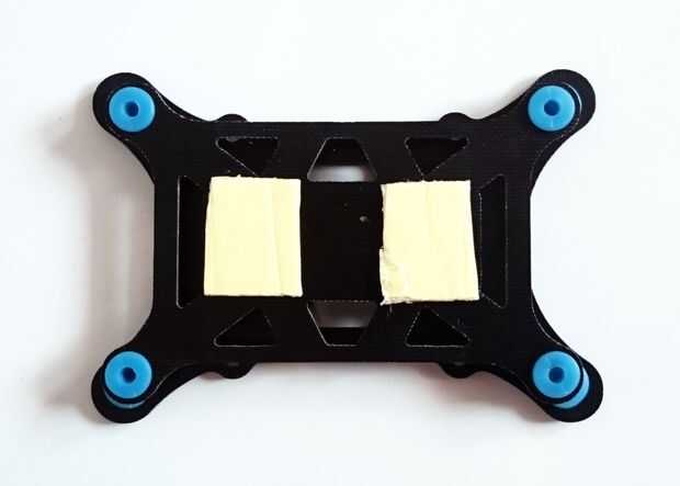 Tomar la placa inferior e inserte las partes sobresalientes de las juntas de goma en los orificios de cuatro esquinas de la placa con un destornillador. Repita el mismo procedimiento e instale la placa superior a esta Asamblea. Corte 2 pequeñas porciones de la cinta de doble cara adhesivos y pegarla en la placa superior. Quite la cubierta aislante de la cinta y coloque el APM Junta en pleno centro de la placa superior.