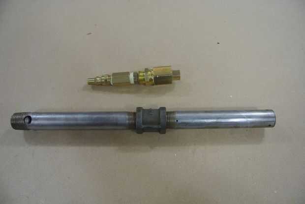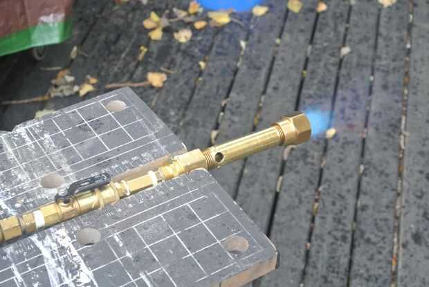 Comencé la construcción utilizando un niple de latón que era demasiado corto, se puede ver en las fotos funciona pero el problema era que el quemador entero consiguió demasiado caliente ya que el tubo era demasiado corto. Te recomiendo utilizar tubería de hierro negro por lo menos 8-10" largo en su lugar, no conducir el calor, así sea. No he podido conseguir tubo de hierro negro y en la longitud que necesitaba así que conseguí un tubo galvanizado en cambio (es lo que Home Depot) y utilizar un acoplador para que sea la longitud que necesitaba.