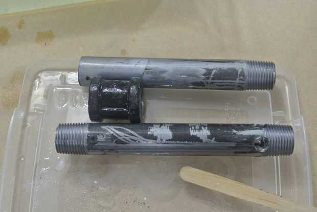 También hay un problema con el uso de tubería galvanizada, cuando se calienta lo puede lanzar los gases tóxicos de zinc, la manera de conseguir alrededor de esto es eliminar la galvanización por inmersión en vinagre durante la noche. Esto se descomponen la capa, se puede ver en las fotos.
