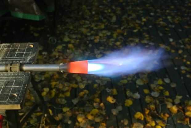 La llama de esta antorcha es alrededor 6-10 pulgadas de largo. Si querías una llama más o menos grande se puede utilizar una más pequeña broca para los orificios y ajuste el tamaño de los orificios de entrada según sea necesario. La llamarada de la boquilla también puede ser ajustada para el refino de la antorcha.