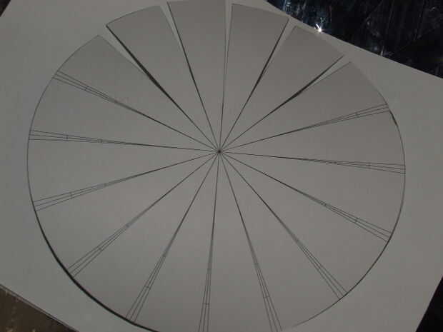 necesito hacer un medio plato parabólico para un proyecto de cocina solar y estoy probando el "método del cono". Básicamente se hará mi plato de conos concéntricos para imitar un plato parabólico y para dar la concentración deseada de la luz.