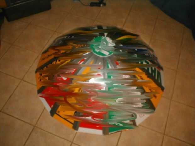 y las piezas de cinta juntas, o Utilice sujetacables, salió un poco inclinado por lo que añadí un disco de ridgid en el centro para aplanar la curva, lo debo haber hecho que primero.