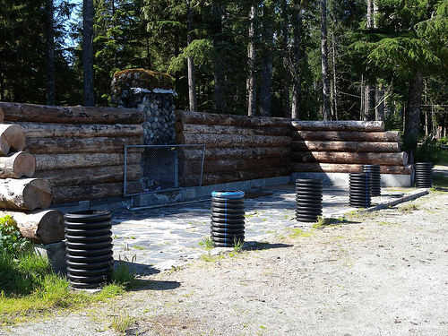 El curso inferior de los registros debe ser perforados de la parte inferior para recibir los postes de metal. Capas sucesivas deben tienen la parte inferior del registro marcado longitudinalmente y una ranura cortar toda la longitud.