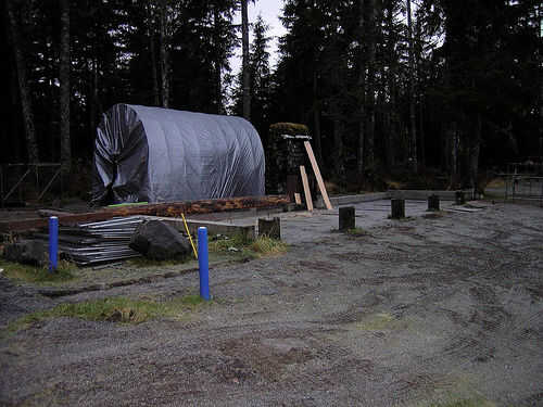 Aparte de el refugio fue desmontado. Piezas de la azotea fueron salvadas para otro proyecto. Algunos de los registros fueron utilizados para la construcción de marcos para trabajar en los nuevos registros. La chimenea fue inicialmente dejada en el lugar y trabajó alrededor de. El plan inicial era solicitar donaciones adicionales de fondos para la reconstrucción de la chimenea. Sin embargo, haciendo este trabajo "interno" tuvimos ahorros significativos y fueron capaces de contratar más tarde.
