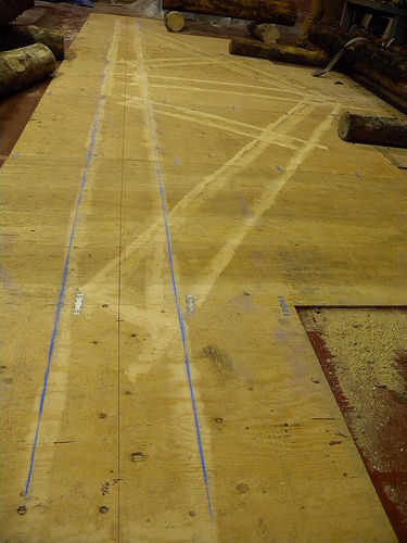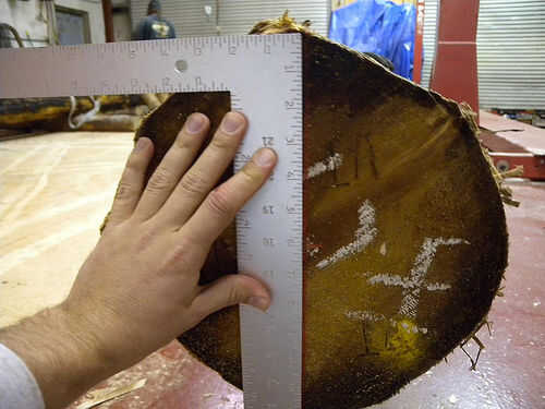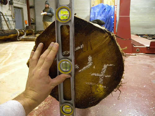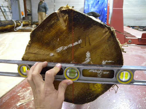 Una vez sabíamos qué lado "a" marcamos los extremos del registro con marcas para indicar el "centro" de la misma. Tenga en cuenta que el centro no necesariamente terminan en el centro del grano.