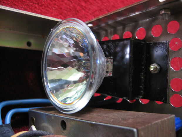 Después de encontrar la distancia adecuada, instalar la pantalla y la lente en ayudas a mantenerlas. He construido un carril ajustable para poder modificar el enfoque según la distancia a la pared para tener una imagen clara. Por supuesto usted puede construir una versión más del avance de la óptica, con un zoom pero no soy un experto.