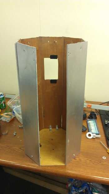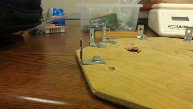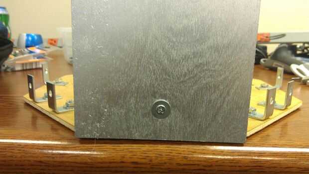 a partir de la parte inferior, conecta los lados a la plataforma utilizando 1" escuadras y tornillos #6. Utilice una arandela en la parte exterior y parte inferior y una arandela y arandela de seguridad con la tuerca para dar un buen ajuste. Empiece en la parte delantera y su camino hacia la parte posterior. Dejar el lado petrolífero, esto será la puerta a nuestro panel de acceso.