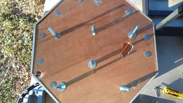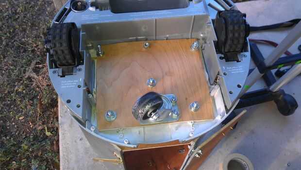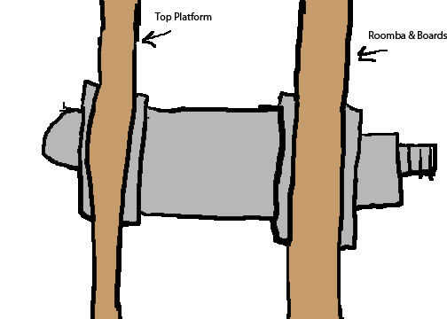 Las dos primeras imágenes mostrarán lo que la Asamblea parece que utilizo para unir la plataforma superior a la Roomba. Usar a un espaciador para levantar la plataforma ligeramente fuera de la Roomba, manteniendo de teclas accidentalmente. Conecte primero el lado de la plataforma. Luego deslice la Roomba en los tornillos que se pega para arriba y fijar.