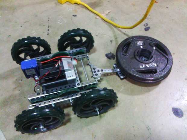 Nuestro diseño original para el robot parecía algo similar a los artilugios de Bad Piggies se muestra en la imagen. Después de unas pruebas con este diseño y con una relación de transmisión diferentes, nos dimos cuenta no era el mejor para usar y rápidamente cambió al diseño actual. El diseño que tenemos ahora es, a nuestro conocimiento, el mejor de todos los robots de los otros compañeros.
