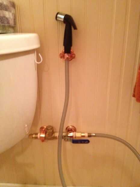 Entra en su cuarto de baño y averiguar el lugar de instalación. Mis paredes del cuarto de baño se hacen de madera así que sólo usé tornillos para montar los soportes de suspensión. Si su pared está hecha de otro material, utilizar anclajes adecuados. No dude en meter un poco de la Asamblea de rociador detrás del recipiente o tanque, pero asegúrate de que tienes fácil acceso a la válvula y la manija del rociador.