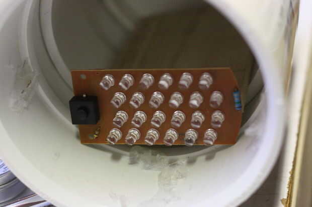 De todos el ROV, esta parte ha sido la parte más difícil. Sobre todo porque en seguí cambiando mi idea para él hasta que se asentaron sobre el uso de una cámara web para visualización en directo y una GoPro para grabar. Todavía no he terminado el plexiglás parte de ella debido a mi tienda de hobby no tiene en stock y todas las tiendas son muy caras. Para empezar, tienes que diseñar una cubierta de cámara redonda que puede caber la cámara y las luces. Una vez que tengas esa parte montada, tienen a prueba de agua varias veces. La mejor manera de tener el compartimiento prueba de agua y accesible todo el tiempo es tener un extremo un tornillo en el otro extremo y el plexiglás. (Consejo: no ponga el plexiglás en hasta que haya terminado el interior y poner el montaje en y la cámara y las luces. A continuación, hacer un soporte para su cámara. Me mina hecha de madera de balsa y perforado en un tornillo de un trípode. Entonces me caliente había pegado en interior de vivienda. A continuación, agregue las luces. Compré un flash de LED de 3 dólares con 27 LED, quitado el caso para, cable extra añadido y caliente pegué justo al frente de la vivienda. A continuación os pongo una batería improvisada en la parte posterior de la carcasa. A continuación, perfore un agujero en la parte superior de la cubierta para cables. todos los cables a través de la alimentación, luego agregar algunos silicio alrededor de él para que no escape. Por último, tomar su plexiglás mida el tamaño de su círculo, córtelo hacia fuera y luego usar silicona para pegar a la parte de afuera de la vivienda.