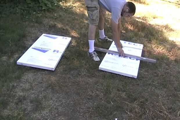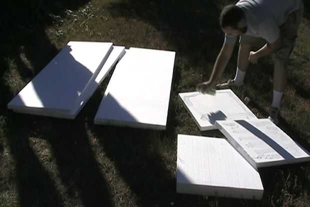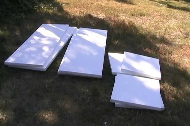 Primer corte 2 pies del extremo de la espuma. Que te dejan con una pieza de 2 x 4 y una pieza de 4 x 6. Ahora cortar la hoja de 4 x 6 en la mitad, con 2 piezas de 2 x 6. Luego corte la pieza de 2 x 4 por la mitad. Debe tener 2 piezas de 2 x 2 y 2 2 x 6 piezas. Ahora hacerlo otra vez a otra hoja de 4 x 8.