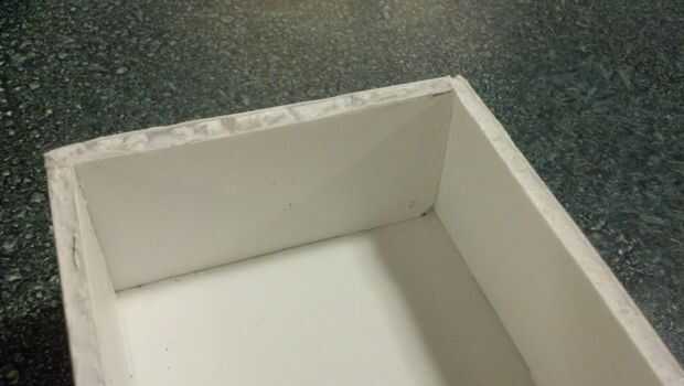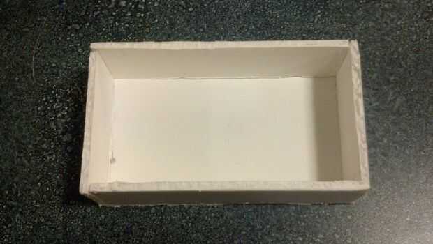 3) una vez que todas las piezas se cortan, pegue los cuatro pedazos más pequeños de lado a uno de los rectángulos más grandes.