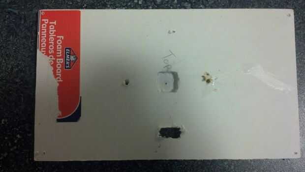1) lo primero que quieres hacer es cortar un agujero para el interruptor. El agujero debe ser lo suficientemente grande para el interruptor a deslizarse pero no caer por el conjunto.
