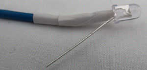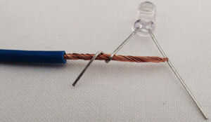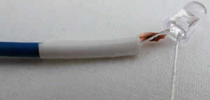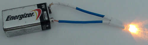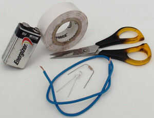 Una batería de 9 voltios, dos de cobre de los cables (aproximadamente 3 pulgadas de largo cada una), tijeras (o un pelacables), cinta aisladora de PVC (marca de Tradeforce es lo que usa aquí JM1999), una luz de LED diodo (Asegúrese de que tiene los postes, que son los dos cables barra-como fuera) y un resistor de 510 ohmios (verde-marrón-marrón).