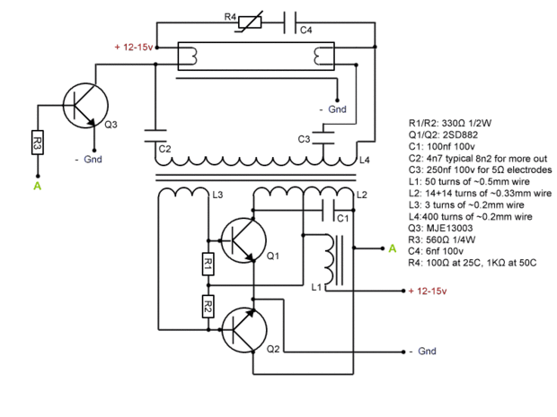 Disminuir el valor de C2 y acortar el aire gap en base (transformador cubierto en el siguiente paso), retroalimentación de comprobar la polaridad de la bobina. Si esto no soluciona el problema de substituir Q1 y Q2.
