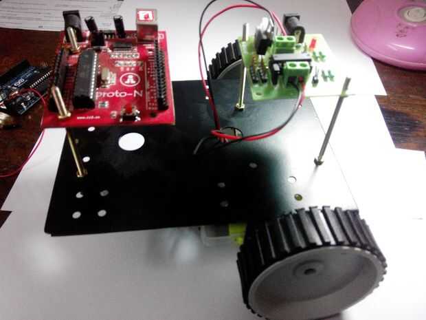 Puente en H es un módulo de controlador de motor con L2938 IC que puede alimentado por una fuente de 12v ya sea por un adaptador o una batería de 9v en serie. las conexiones aquí va.