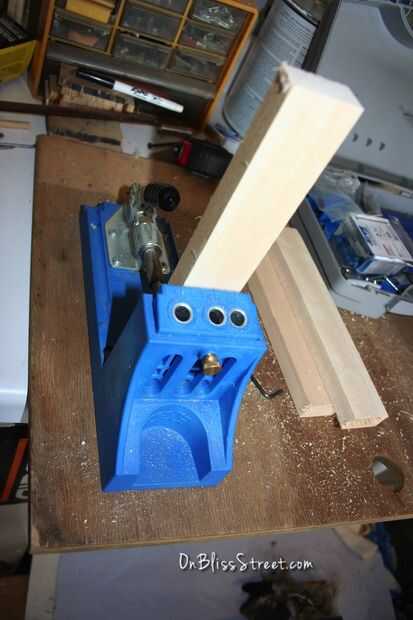 Con su adorable poco Kreg Jig - vas a perforar de bolsillo en un extremo de los 4 tableros recta restantes.