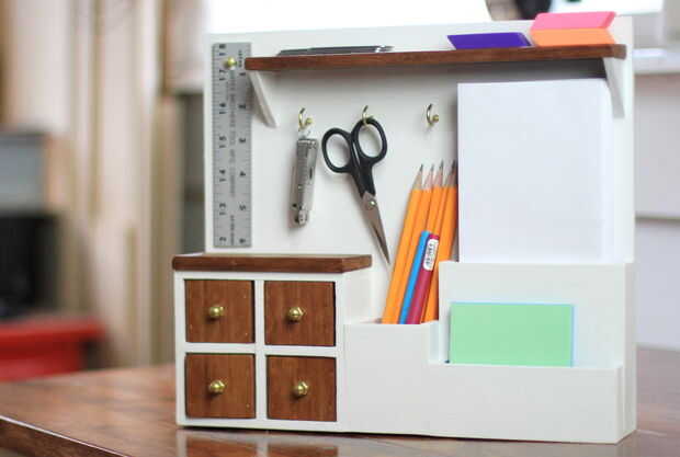 Haciendo un carrito organizador de escritorio personalizado puede realmente ser práctico como se puede hacer caber un montón de cosas en un espacio relativamente pequeño. Para este proyecto que realmente quería hacer algo sentía muy acabado, casi como una miniatura mueble, que también era muy práctico para ayudar a mantenerse organizado en el escritorio. Cualquiera puede tener esta unidad parado sobre un escritorio contra la pared, o se puede colgar en la pared, si funciona mejor. En términos de material, estoy utilizando madera MDF y ipe, sin embargo cualquier madera sería agradable y proporciona excelente contraste contra el MDF blanco.