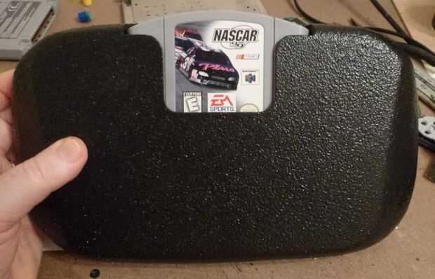 Quería el portacartuchos a la etiqueta del cartucho y ser fácil de insertar y extraer el cartucho; así que póngala dentro de la envoltura, marcar donde se encuentra el cartucho y hacer una zona de la caja con estireno y también las tiras de madera de pino; diseñado para que el puerto del cartucho sí mismo se fija en la parte posterior de la construcción de la motherboard para conectarse.
