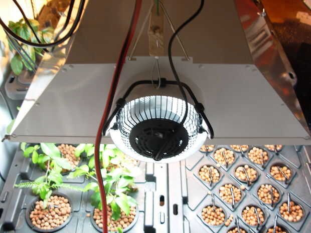 Probablemente puede utilizar ventiladores que ya alrededor de la casa. No tenía ningún extras yo mismo. Conseguí tan baratas. Un ventilador se ajusta dentro del conducto de 400 vatios cubierta de luz. Cabe justo en perfectamente sin ataduras necesarias. Lo conseguí en WalMart para 7$ es una 4" tamaño marca Massey con un cuerpo metálico y láminas.