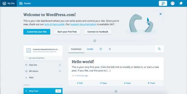 Después el último paso, en la barra lateral izquierda se verá un enlace de WP Admin. Haga clic en él.