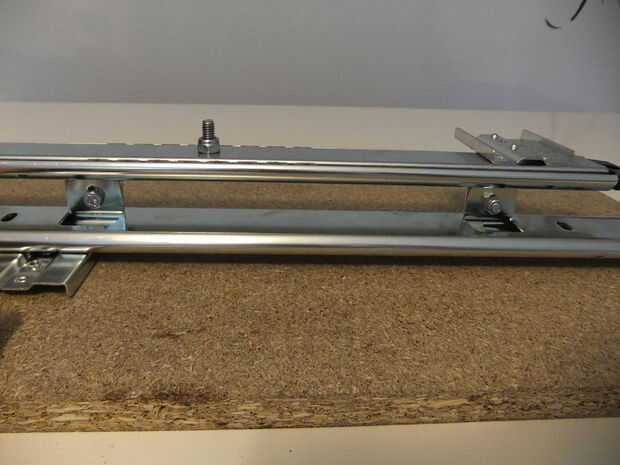 Luego añadí el segundo control deslizante al primero para duplicar la capacidad de movimiento. Convenientemente los deslizadores del cajón se venden en pares. Las escuadras eran parte de los reguladores y fueron empernadas junto con dos boltsand de 1/4-10 tuercas de montaje (M5 * 10)