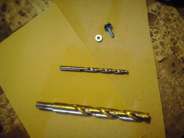 Brocas 1/2" y 1/4" y 1/8-1/4" tornillos y tuercas de seguridad (acero inoxidable preferido)