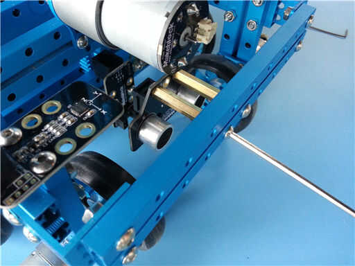 Como todos sabemos, el sensor de ultrasonidos no puede detectar obstáculos de distancia de 0-30 mm. Así que en este caso, instalamos el sensor de ultrasonidos dentro del coche, dejando que la barra de anticolisión en frente para chocar las escaleras. De esta manera, el ultrasonido solo resultan ser capaces de detectar obstáculos, escaleras.