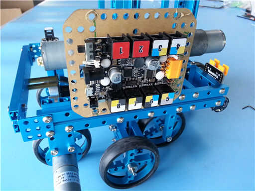 Coche de competición de habilidad es una de las formas más divertidas en el MakeblockUltimate Kit. El coche de carreras tiene forma cool y timón flexible. Para colocar las baterías en el coche de carreras, pueden competir con sus socios!Ahora, vamos