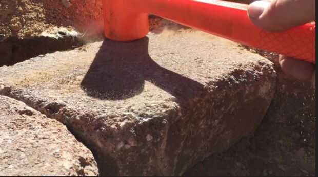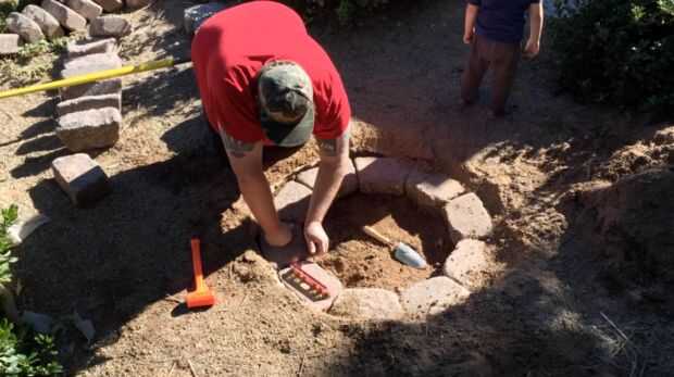 Asegurándose de que la capa inferior de piedras son planos y nivel es la parte más importante de la construcción. Con una base nivelada y plana el resto de las piedras apiladas en la parte superior no será nivel o plano. Comience comprobando una piedra con su nivel. Con su mazo de goma puede golpear la piedra con el fin de compactar la suciedad debajo de ella y hacer que sientan plana y nivelada. Después golpeando un par de veces, revise de nuevo la piedra con el nivel. Asegúrese de comprobar de delante a atrás e izquierda a derecha con el nivel para asegurarse de que no es que se inclina hacia adelante o hacia atrás o de lado a lado. Si eres incapaz de conseguir el nivel de piedra que necesita levantar para arriba y sea quitar un alto punto en la tierra por debajo de la pala de jardín, o agregar una pequeña cantidad de suciedad para elevarlo. Si necesita añadir suciedad, sólo espolvorear libremente y permitir que el peso de la piedra para compactarla. Comprobar nivel otra vez y golpeó con la maza de goma según sea necesario. Una vez que una cuadra y plana continúe el proceso alrededor en un círculo has nivelado cada piedra.