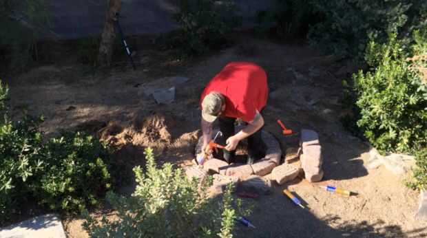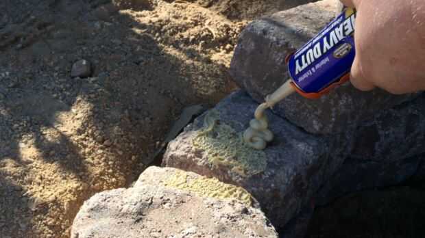 Una vez que la primera capa es plana y nivel eliminar cualquier exceso de suciedad para preparar para pegar la capa siguiente. Aplique una cantidad abundante de adhesivo de construcción para la parte inferior de otro bloque, dan la vuelta y encima la primera capa del apilado. Sobre el chapaleteo dos bloques en la capa debajo de él. Seguir pegando y apilar las piedras restantes en el segundo nivel. Pegamento y el tercer nivel de la pila de la misma manera, asegurándose de que usted compensar ese nivel así. Compruebe la capa superior para cualquier bloques saltones. Si encuentras uno, sacarlo y añadir una cantidad abundante de adhesivo de construcción adicional. Reemplace el bloque y déjelo asentarse suavemente en el montón de adhesivo de construcción. De esta manera cuando el adhesivo seca el bloque se conectarán firmemente a la capa inferior.