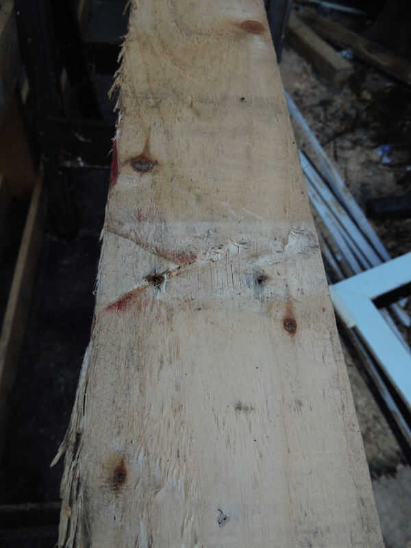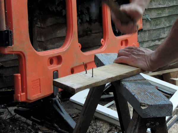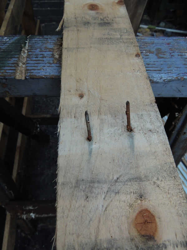 Los clavos de la tabla serán necesario eliminar. Si tienes suerte, serán clavos llano como este. Algunos clavos tienen anillos de agarre, que hacen difícil de quitar. El cincel corta generalmente a través de clavos anillo, dejando el metal en la tabla.