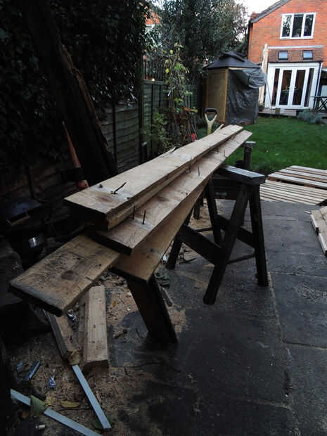 Tablones de la plataforma están clavados sobre sus rieles, generalmente con 2 clavos, pero a veces sólo uno. Las uñas menos más fácil será eliminar las tablas. Yo suelo utilizar un cincel para hacer esto. Golpear las uñas desde el borde este y corta a través de ellos o se tira del carril. A veces la cabeza se arrancó a través de la tabla también.