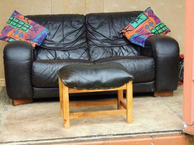 El sofá de cuero precioso fue otro freebie de Gumtree.