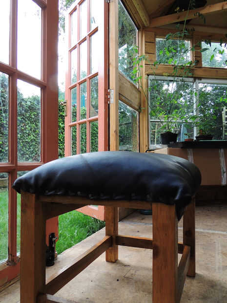 También hice el estrado cubierto de cuero que se muestra aquí especialmente para este summerhouse, también de madera recuperada. Que construyen también fue realmente gratificante. Por suerte, hay un Instructable separado sobre eso!
