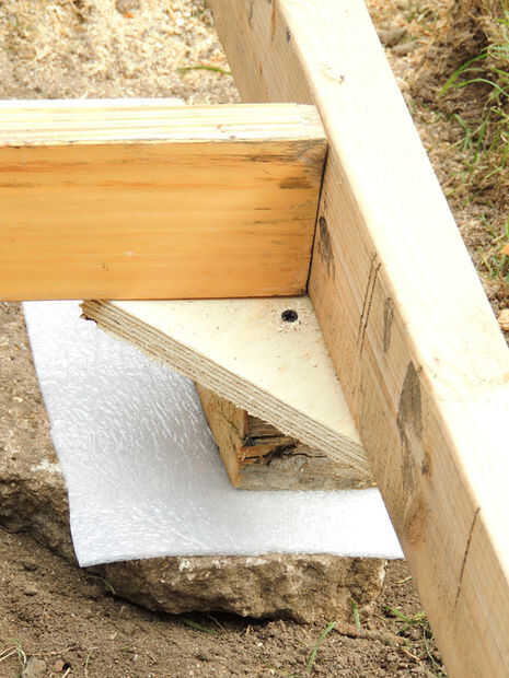 Las esquinas fueron apoyadas por clavado en los recortes de capa. Esto torna un endeble marco súper fuerte.