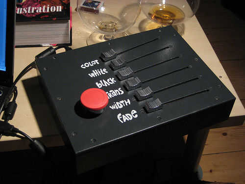 Los controles de Tagtool constan de 6 faders y un pulsador. El botón libera un dibujo por lo que el animador puede moverlos con el gamepad. Hay instrucciones detalladas sobre cómo usar los controles de aquí..