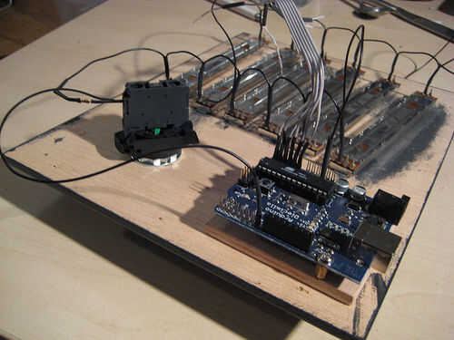 Esto muestra cómo conectar el Arduino con los faders y el pulsador.