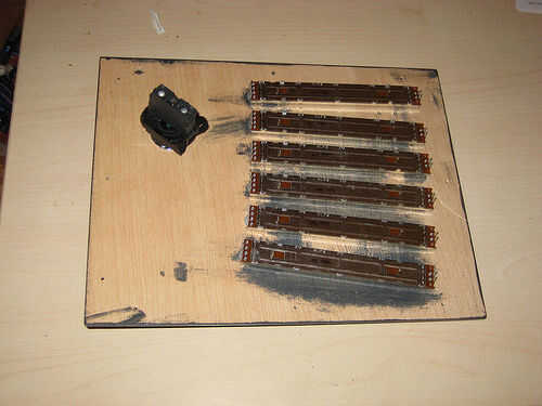 Atornille los faders y el botón para el panel superior.