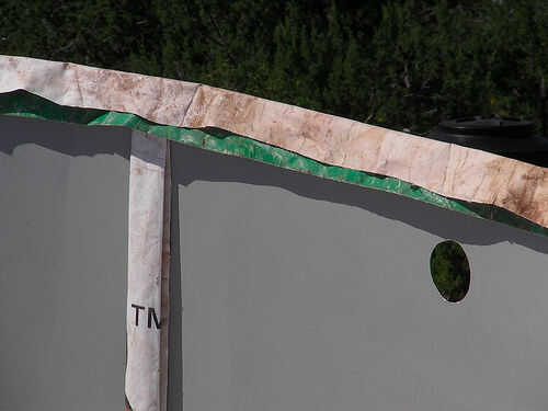 6. Coloque el revestimiento en un lado del tanque, luego desenróllela. Posición de la parte inferior del forro en el piso, para que cumpla con las paredes uniformemente, luego levante los laterales del forro para arriba contra y sobre las paredes metálicas. Debe haber aproximadamente un pie de línea extra en el exterior de las paredes, y una vez todo en su lugar, llevará a cabo sí mismo. Asegúrese de dejar un poco de holgura en los lados.