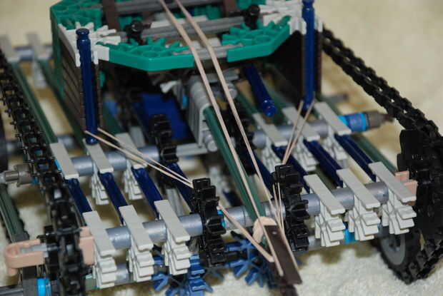 Se trata de un tanque de K'nex que hice recientemente. Tiene una torreta de rotación completa y es accionado por dos motores de K'nex verdes. Podría actualizar un arma de trabajo para la torreta y tal vez una manera de conectar la torre a un motor de