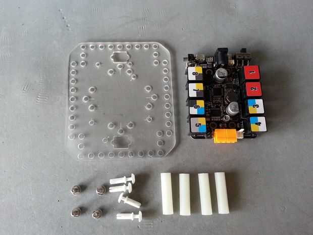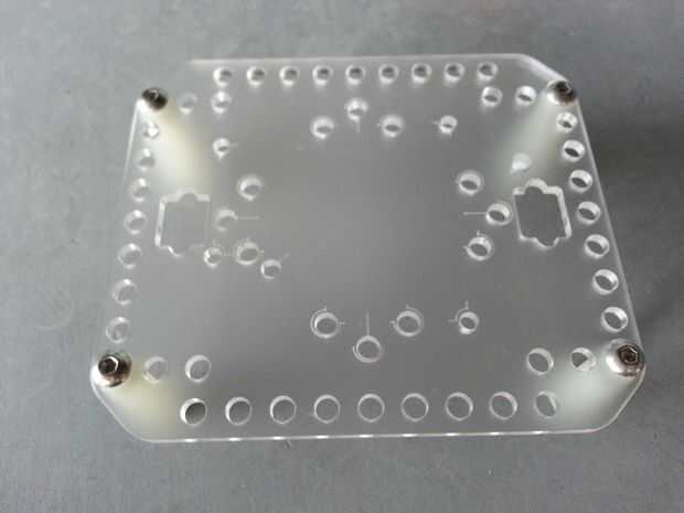 Fije el perno de nylon en la hoja de acrílico con los tornillos de casquillo M4x14.