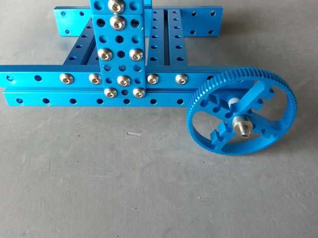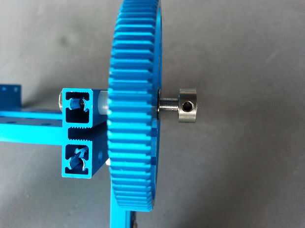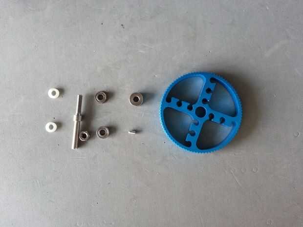 Y luego el cojinete de brida y la polea de sincronismo 90T en el eje roscado.